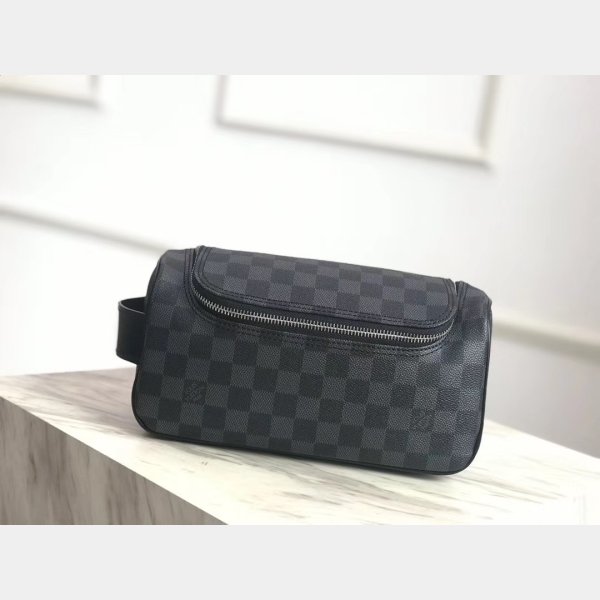 Designer Louis Vuitton Toitry Pouch Damier Graphite Canvas N47625 Gray